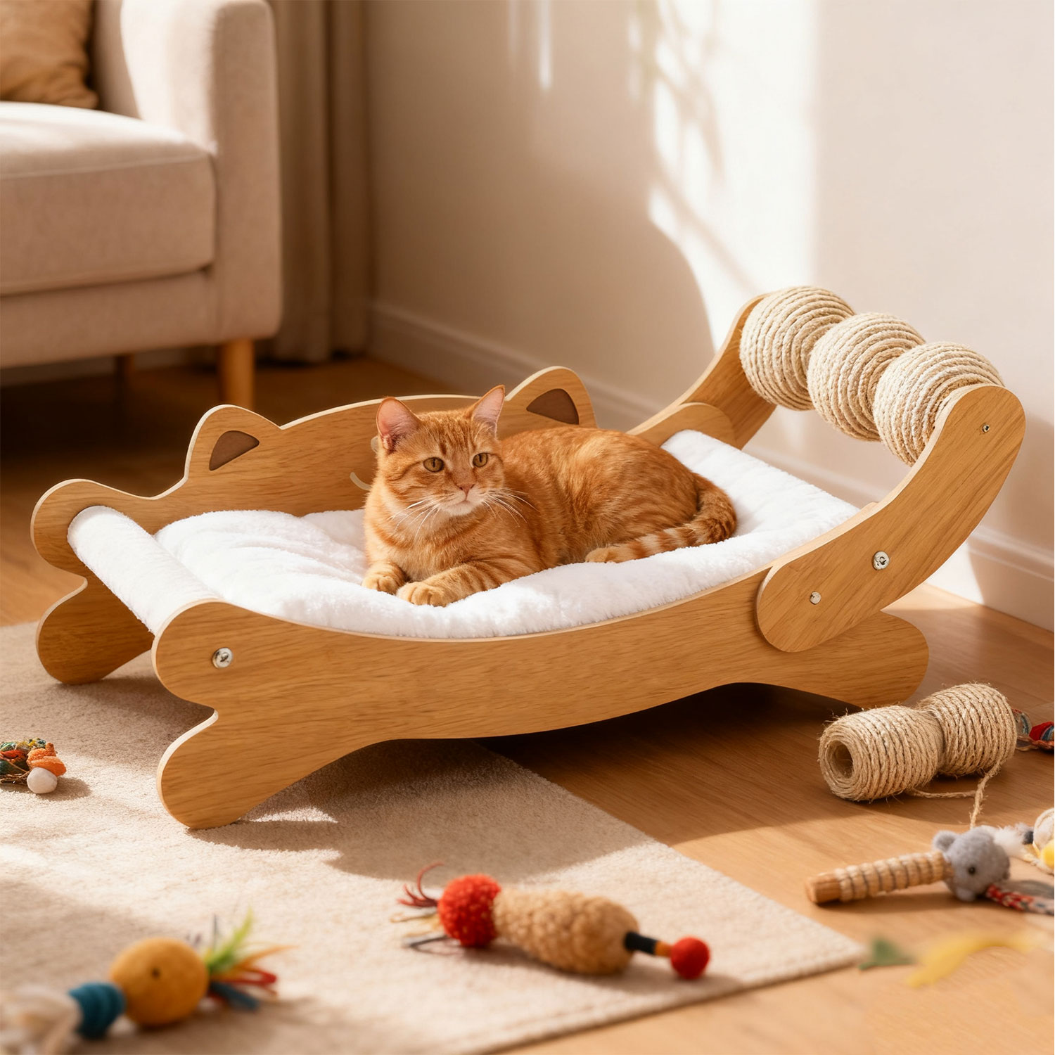 Soft Lounge Surface: The integrated bed area provides a soft, comfortable spot for your cat to relax and sleep, making it a perfect cozy corner for naps in your living room or bedroom.