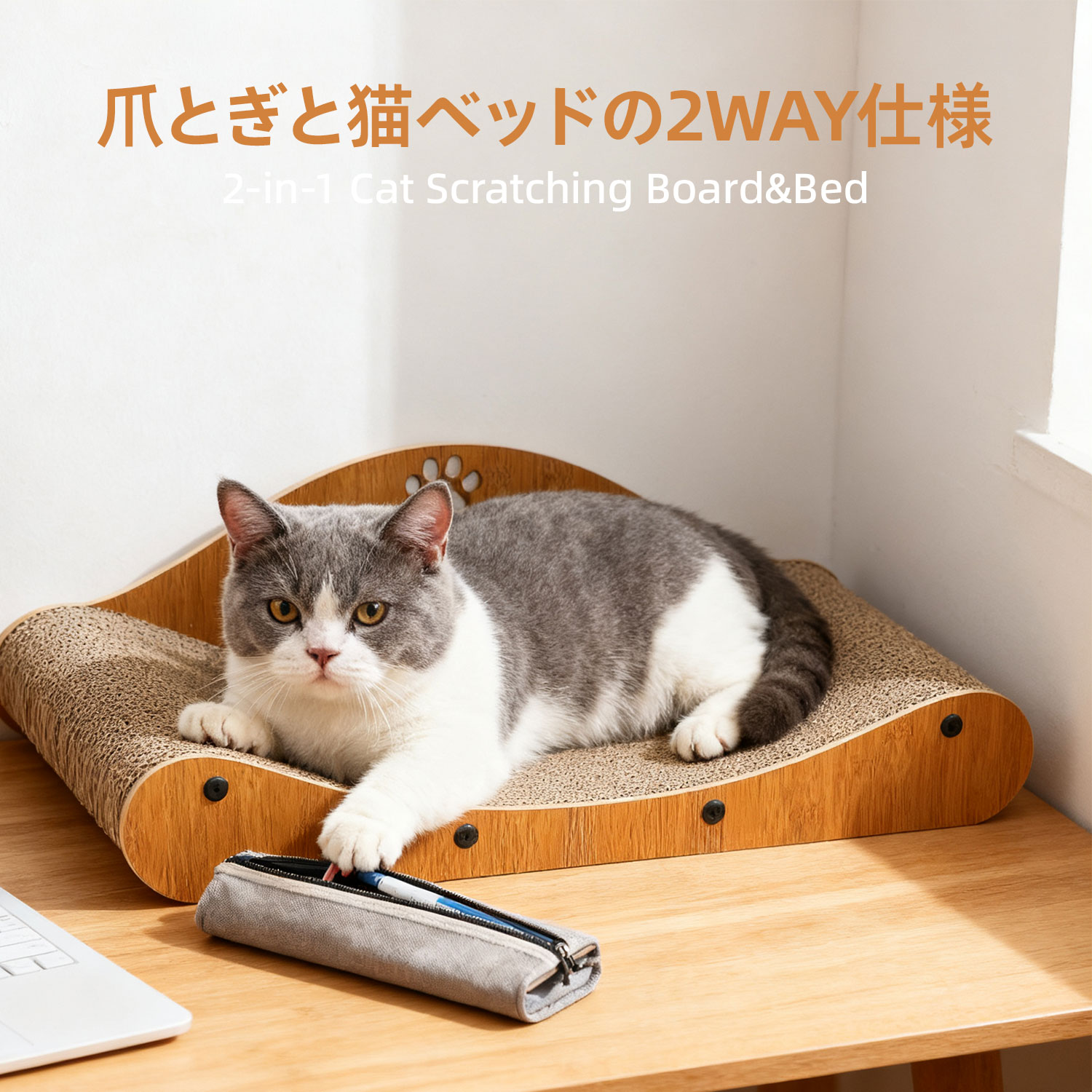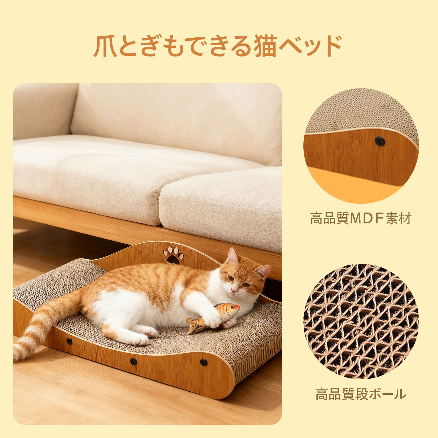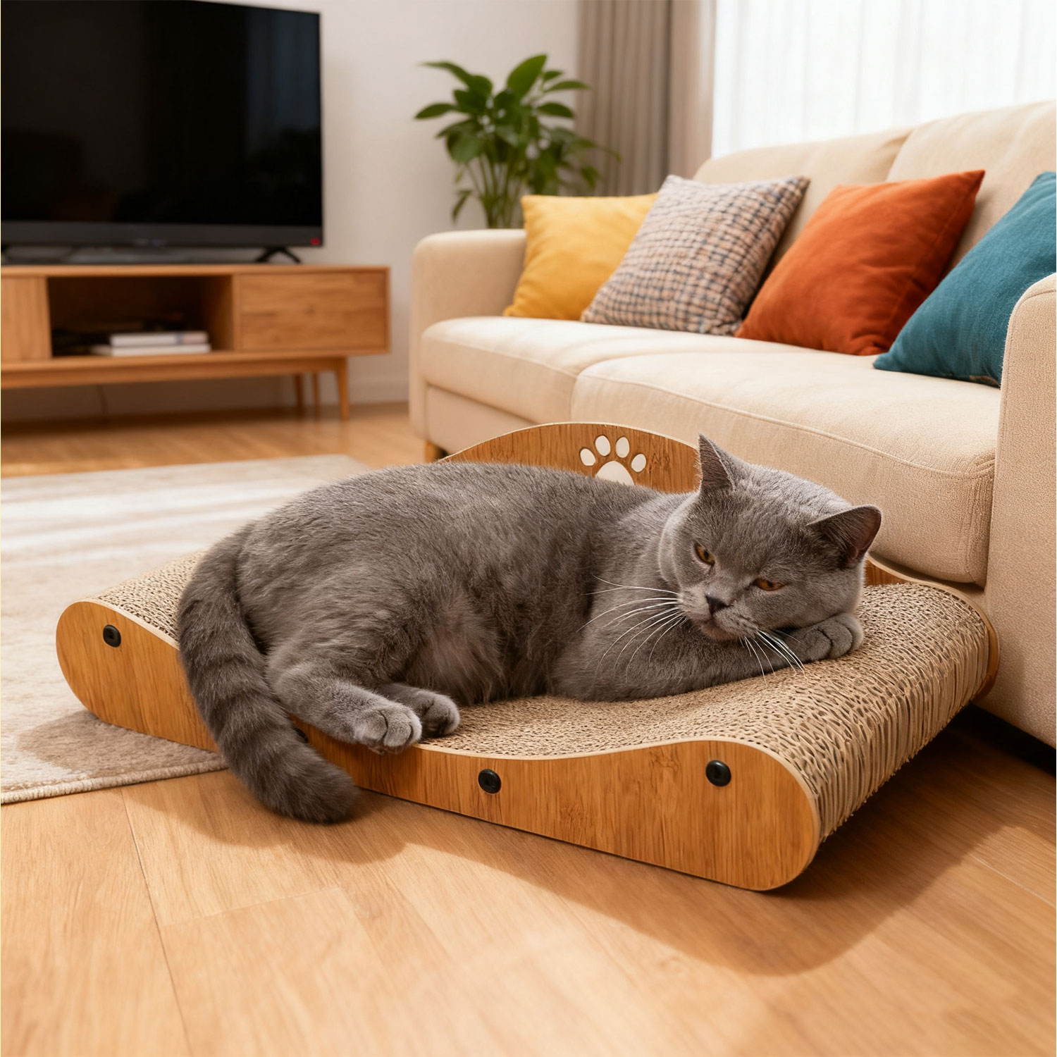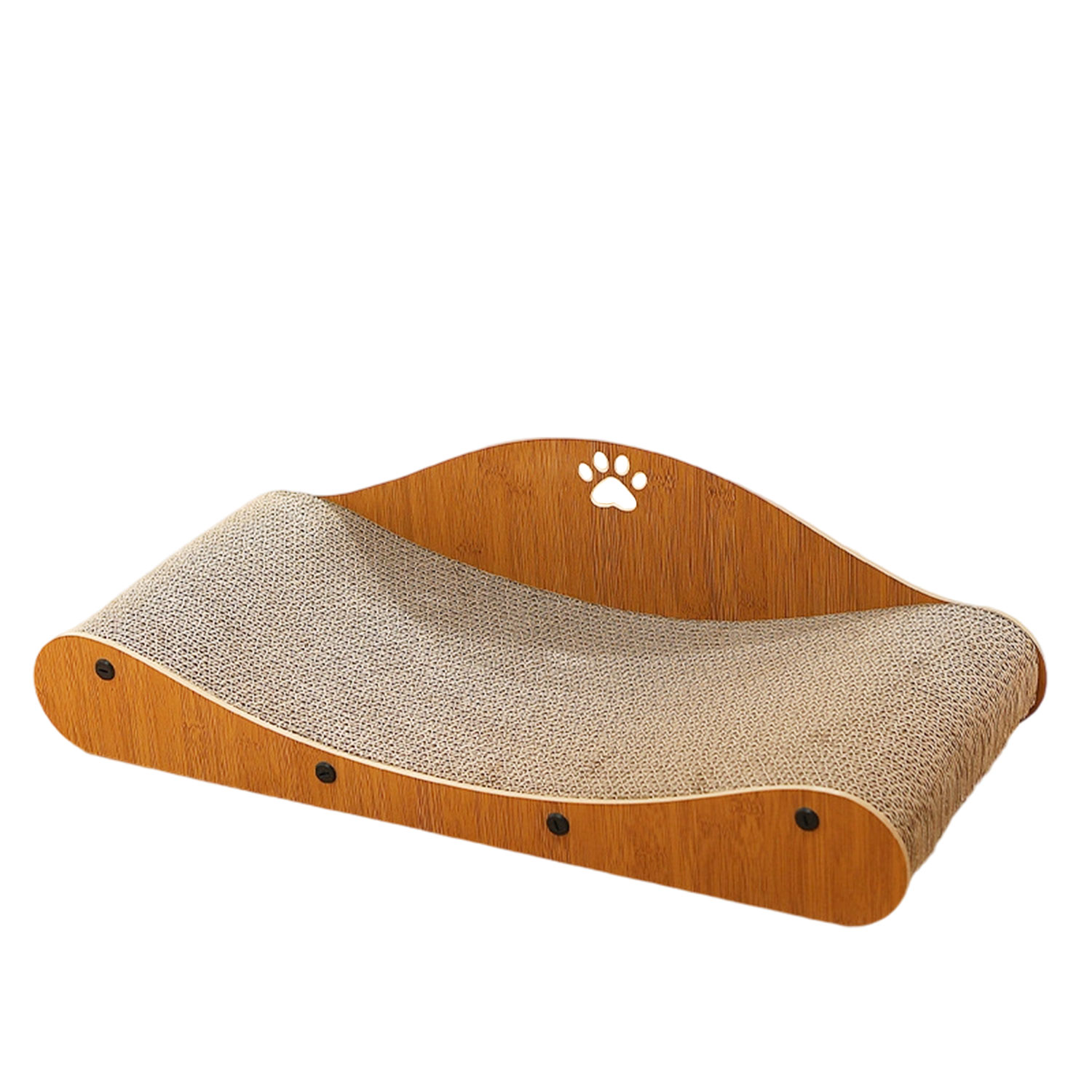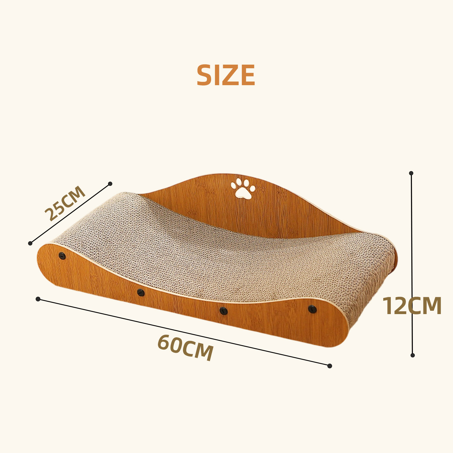 2-in-1 Cat Scratching Board & Bed - Non-Shedding Corrugated Cardboard, Durable Scratch Pad with Lounge for Cat Friendly Home, Wood Grain Design S6083404
