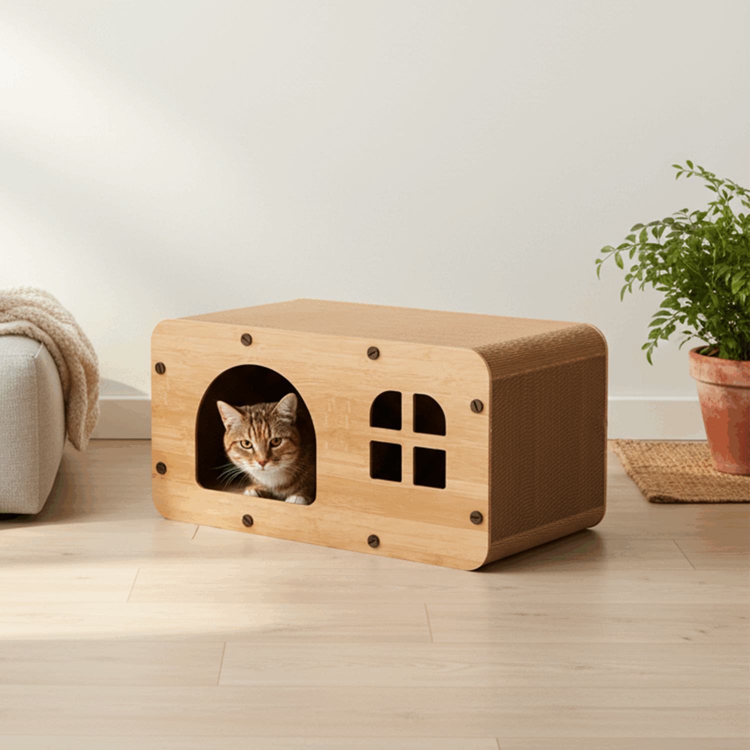 A practical 2-in-1 solution that functions as both a satisfying scratching board and a cozy resting bed, catering to your cat's natural instincts for scratching and security.