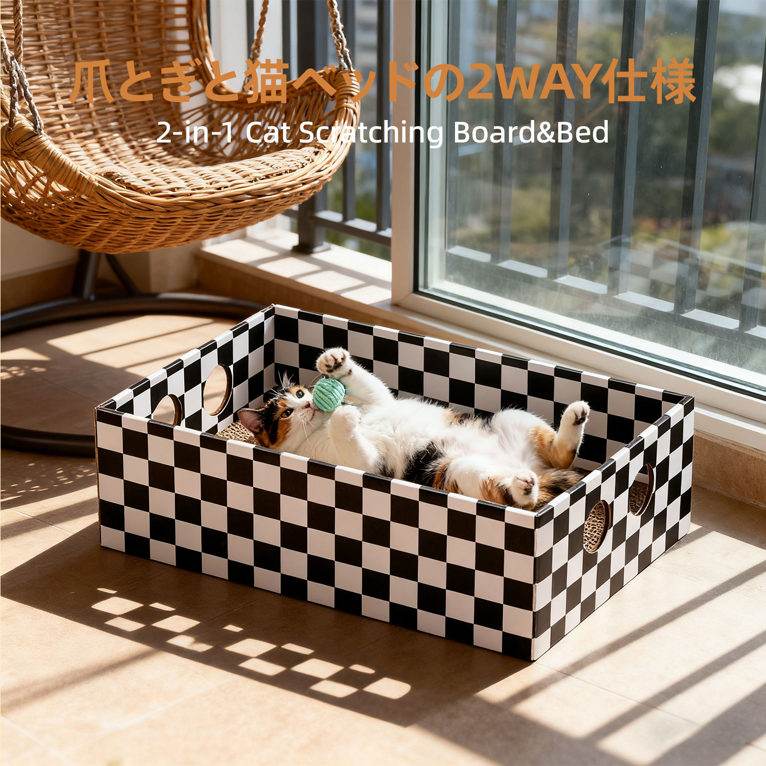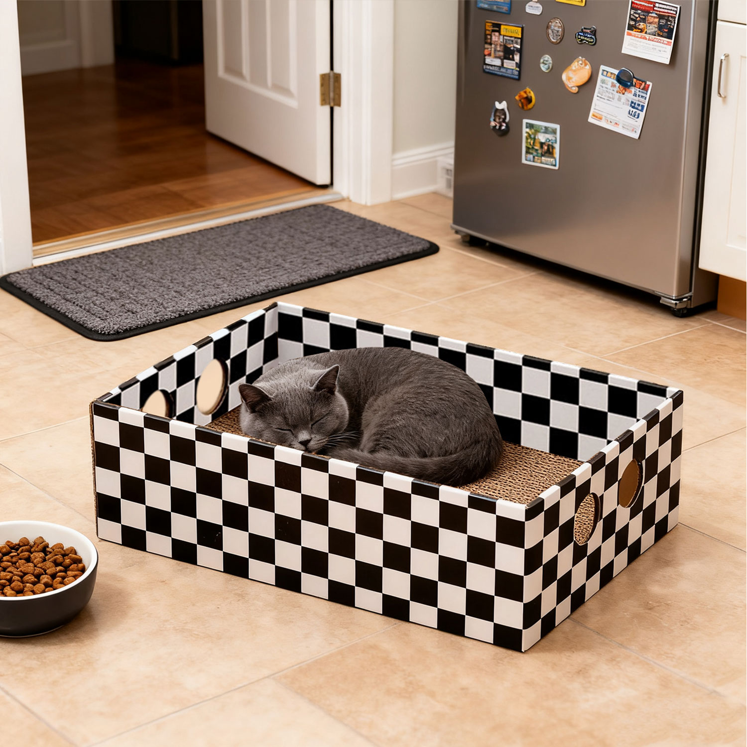 Large Corrugated Cardboard Cat Scratcher House - Durable Scratch & Sleep Box with Non-Shedding Surface, Comfortable Pet Bed for Cat Friendly Home S6083405
