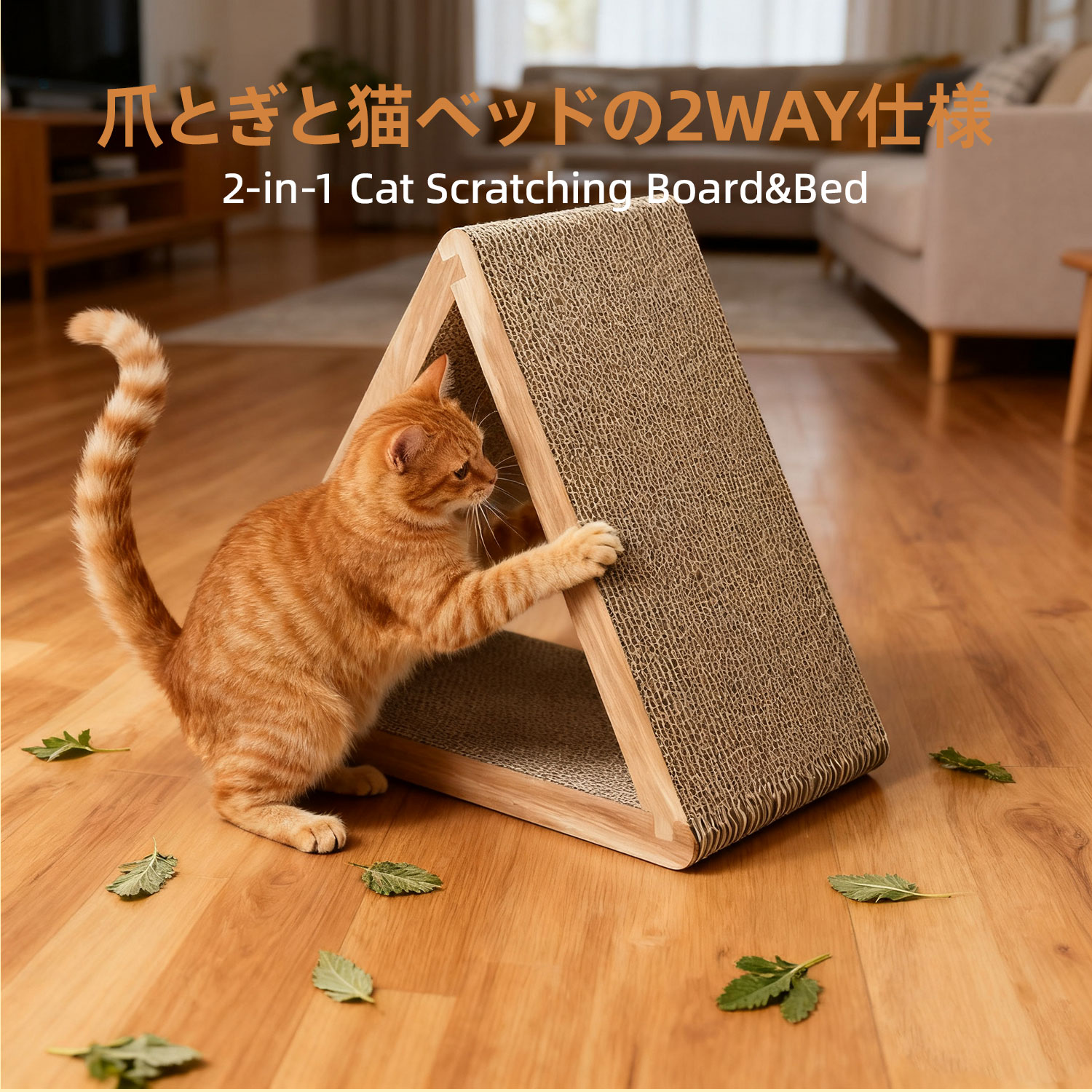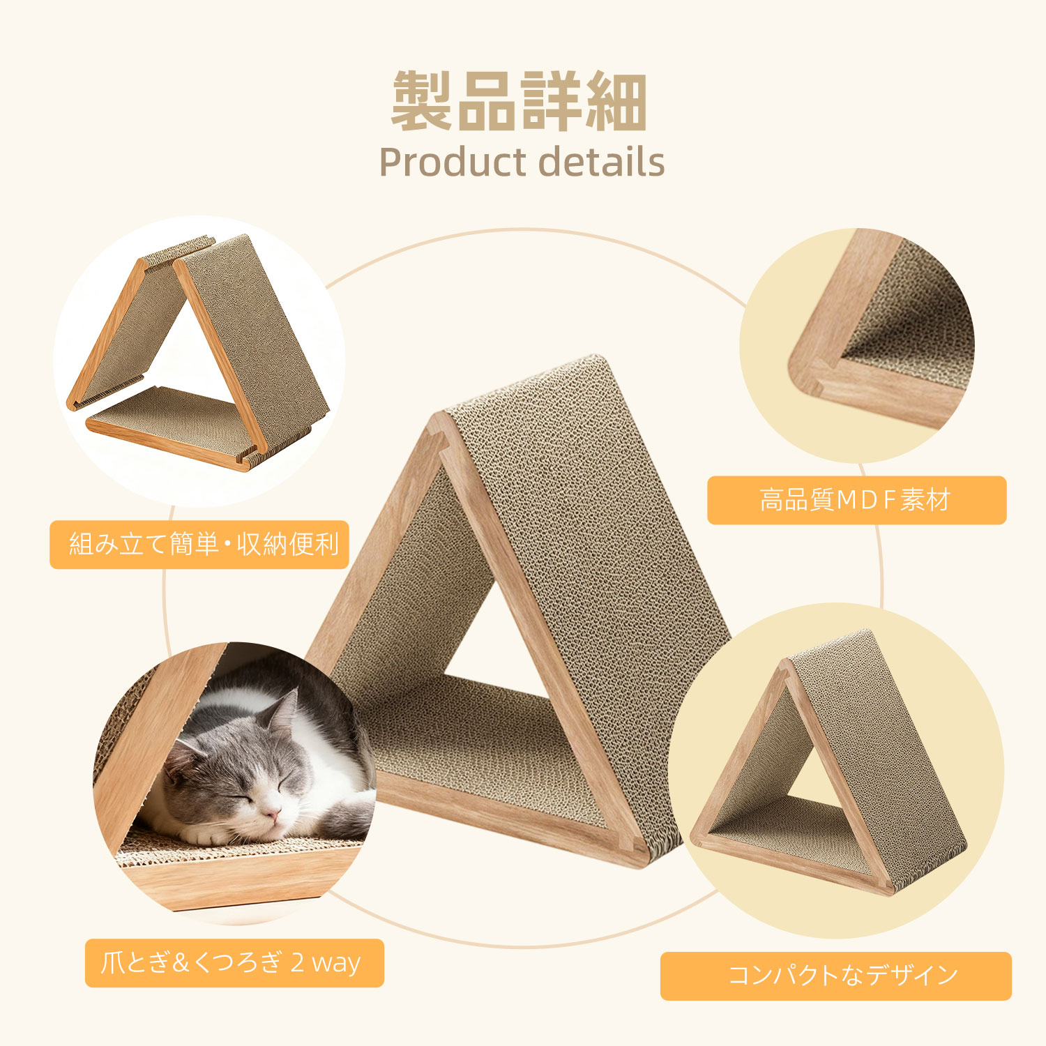 Triangular Cat Scratching Board with Corrugated Cardboard - Eco-Friendly Natural Wood-Grain Design, Non-Shedding Scratch Toy for Indoor Cats Pet-Friendly Home Decor S6083403